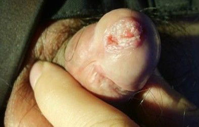 7、软下疳:初发为外生殖器部位的炎性小丘疹。24-48小时后,迅速形成脓疱,3-5天后脓疱破溃后形成溃疡,境 界清楚。溃疡呈圆形或椭圆形,边缘为锯齿状,其下缘有潜浊现象,周围呈炎症红晕。溃疡底部有黄色猪油样脓苔,并覆盖很多脓性分泌物,剥去脓苔可见出血。