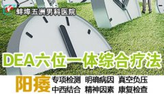 蚌埠五洲医院性功能障碍诊疗中心,采用国际前沿的DEA六位一体综合疗法,准确 鉴别男性性功能障碍的心理性、器质性、功能性等致病原因,制定个性化、疗程短、见效快的治疗方案。综合yao物渗透、电子通络、磁振巩固、康复治疗等多项疗法,较大程度 地调节大脑皮质功能,唤起勃起的硬度,延长勃起时间,恢复正常的射精阈值。该康复疗法是目前治疗男性性功能障碍的高效安全疗法。>>>点击详细了解治疗技术及费用