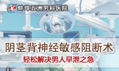 蚌埠五洲医院男科引进的“阴茎背神经微控阻断术”依托超高倍显微镜,在可视、清晰视野下,进行运动支和敏感支区分,确保手术安全。通过阻断支配阴茎头和背侧敏感神经支,显著降低阴茎头的敏感度,提高射精阈伐值,延长射精的潜伏期。