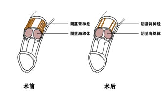 技术原理:结合了敏感神经测定技术、显微定位技术、微创无痛技术,在阴茎冠状沟处开2毫米小孔,将过多的阴茎背神经阻断,降低阴茎头敏感性,提高排精阀值